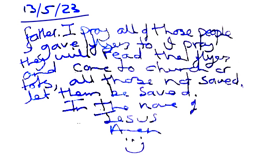 Muslim lady follows the Christian faith Sometimes prayers can take a while to be answered. But when they are the feeling of joy is so very much worth the wait. Our next testimony is a lady who was a Muslim but has now decided to follow the Christian faith. We met this young lady in 2022. Here is a WhatsApp message dated 17th of May 2022. This was the first time we spoke to this Muslim lady. ![]() Dean was praying in the Admiral pub. Here are the prayers written in a journal asking the Lord to bless our street work projects. ![]() After prayer the Lord tells Dean to go to a community centre. Dean thought he was crazy, why would he go down there? Well he went anyway! It turned out that it was a community fun day being held at the centre where there were many Muslim families in attendance. Dean ended up talking to a Muslim lady at the festival which he didn't even know was taking place. Here is the prayer spoken with regards to the flyers after our encounter. ![]() In December 2023 we heard that this lady had decided to follow the Christian faith. Then on the 7th of January 2024. We were blessed to be at the lady's baptism as well as seeing her son get baptised. ![]() It so important to pray because the Lord is listening and moving through them. It shows that the Lord is working everything for good and in His time. The Lord planting and watering seeds that are leading people to salvation. We admire and respect all people who follow a faith. We often see that people of faith do have things in common such as strong unity and relationships with family and friends. We were blessed to see a lady come and follow the Christian faith as is her right to do in the UK. We give Jesus all the glory. |