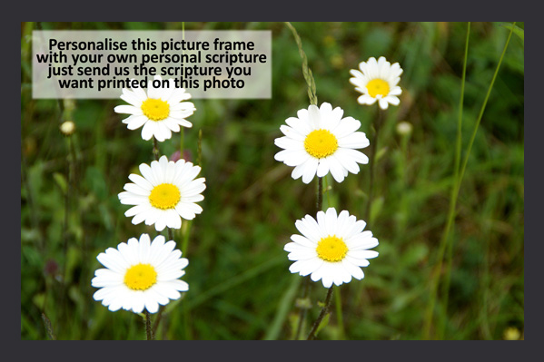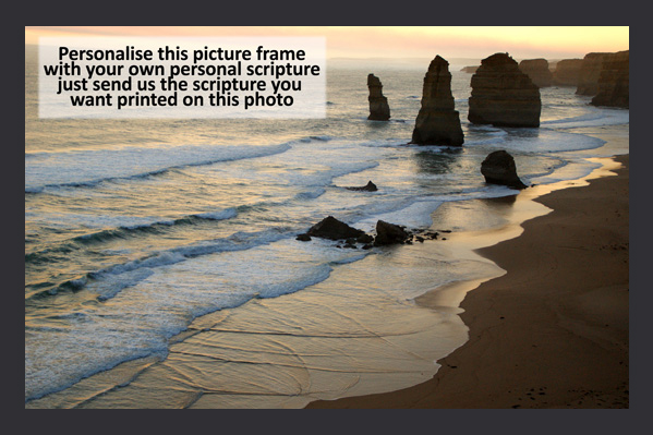 Send in your personal scripture and we will add it to the picture frame of your choice![]() Take a look at the range below and to order just email us the photo code number, scripture, your address and we will be in touch with a proof visual and to confirm delivery. |