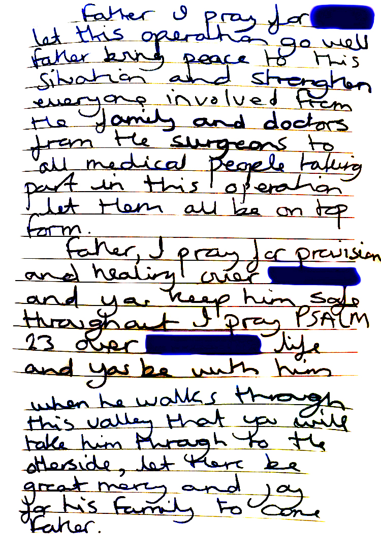 Jesus is still healing people today![]() Mark 1:40-45, 40 "A man with leprosy came to him and begged him on his knees, "If you are willing, you can make me clean." 41 Jesus was indignant. He reached out his hand and touched the man. "I am willing," he said. "Be clean!" 42 Immediately the leprosy left him and he was cleansed." Here is a prayer prayed for someone in 2020 who had cancer of the spine during the first year of the pandemic. ![]() There were complications in the first operation where the persons hands and legs lost their feeling because when removing the tumour they had to do it in a way that affected the spine, causing the loss of feeling. However with much prayer the feelings in the arms and legs returned. The second operation came along to remove what was left of the tumour. This is where the miracle really takes shape. When the surgeons went to remove what was left of the tumour they couldn't find it, it had completely dissapeared. This left the person who has spinal cancer completely healed with full feeling in his hands and legs. JESUS IS THE HEALER. This is what happens in prayer. Jesus is listening to our prayers and is answering our prayers. It says in 1 Peter chapter 3 verse 12: 1 “Sing to the LORD a new song; sing to the LORD, all the earth. 2 Sing to the LORD, praise his name; proclaim his salvation day after day. 3 Declare his glory among the nations, his marvellous deeds among all peoples.” |